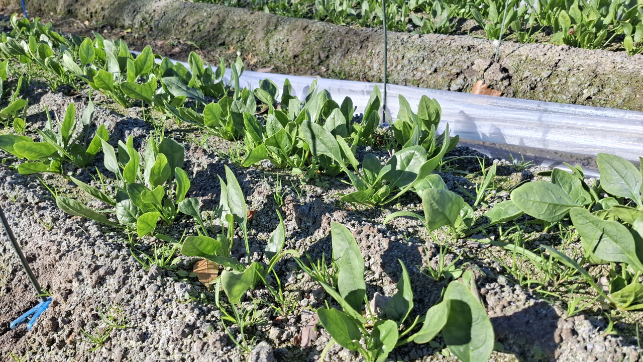 今月の、のきさき朝市にはほうれん草と春菊を並べられそうです。